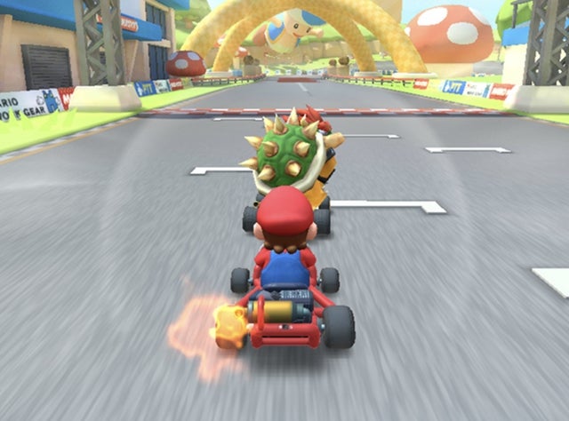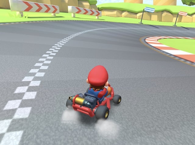When you lot plough inwards Mario Kart Tour, you lot tin drift if you lot concord that plough long enough. When your racer begins to turn, function past times along to concord that plough until you lot encounter white smoke seem from behind the tires.