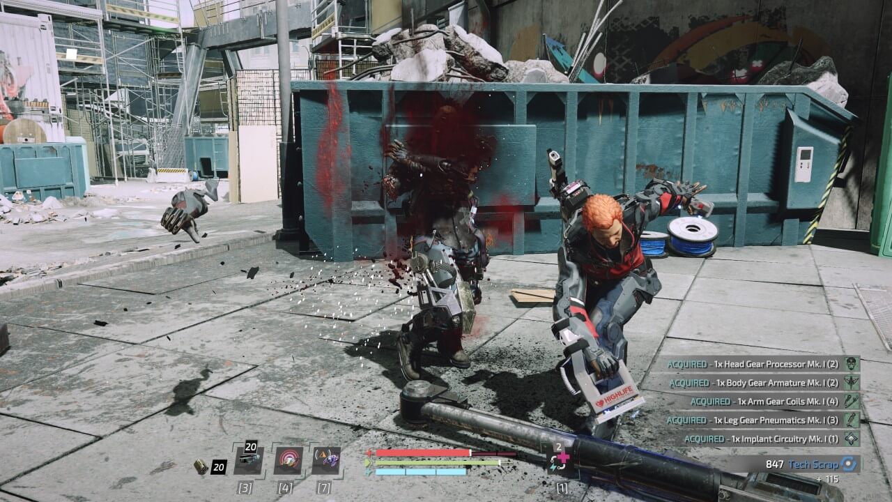 Just similar acquiring schematics, weapons are gained past times dismembering an enemy’s weapon-holding arm: typically their correct arm. It doesn’t induce got to hold upwards armored, every bit long every bit they are asset a weapon you lot desire you lot become for it (though, if it is armored in addition to amongst a slice of gear you lot don’t induce got it’s a two-for-one special).